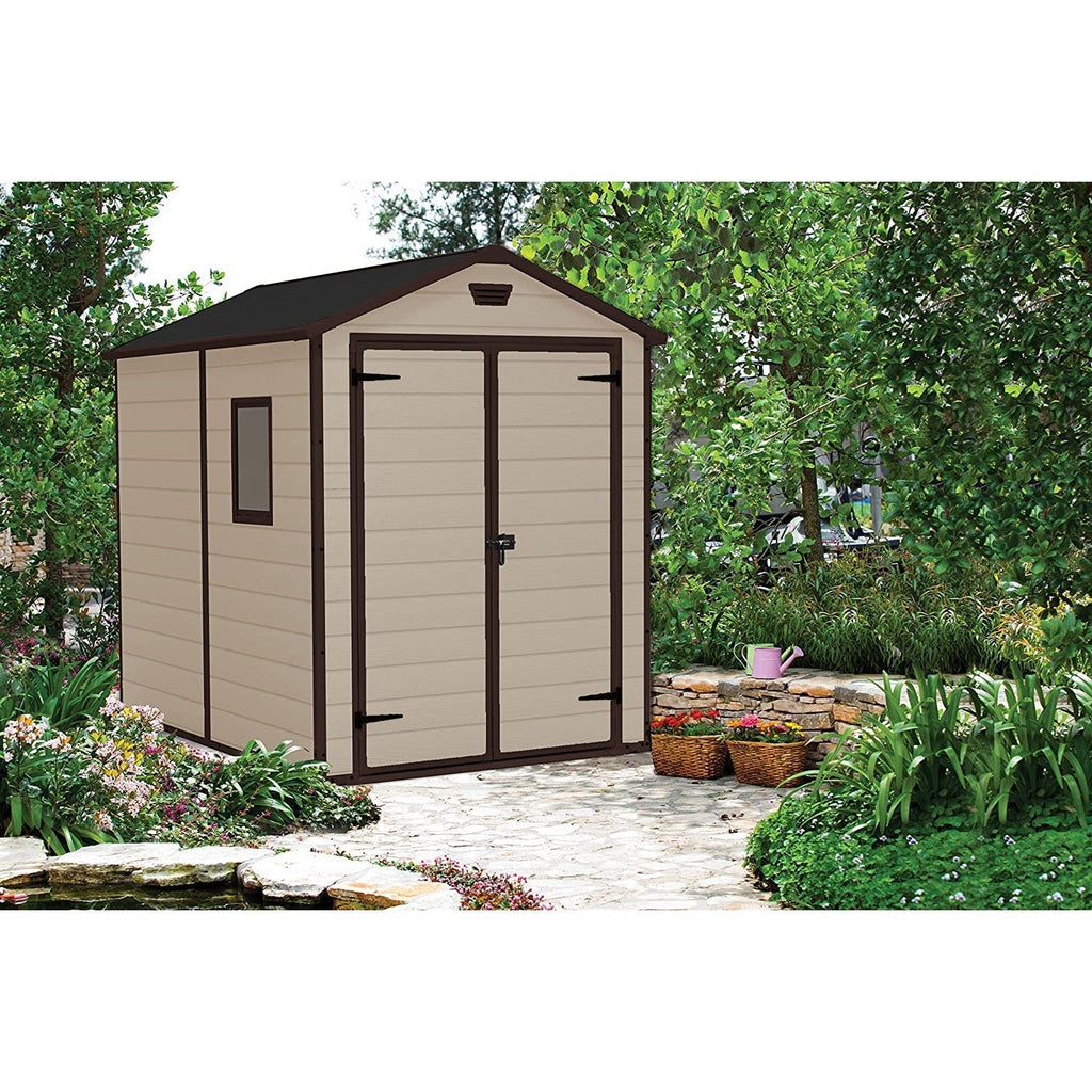 The Keter 6′ x 8′ Manor Plastic Garden Storage Shed – Beige is compact, sturdy and built to last.