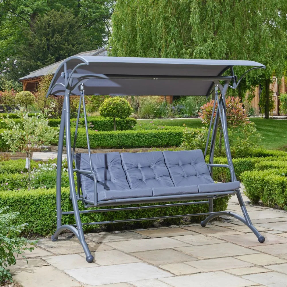 Relax in style with our new Alfresia 3 Seater Swing Seat, an essential for your garden this summer. Designed for comfort, durability and style, not only is this swing seat spacious enough for 3 people, it has deep polyester cushions for added comfort and is sure to look great in your garden.