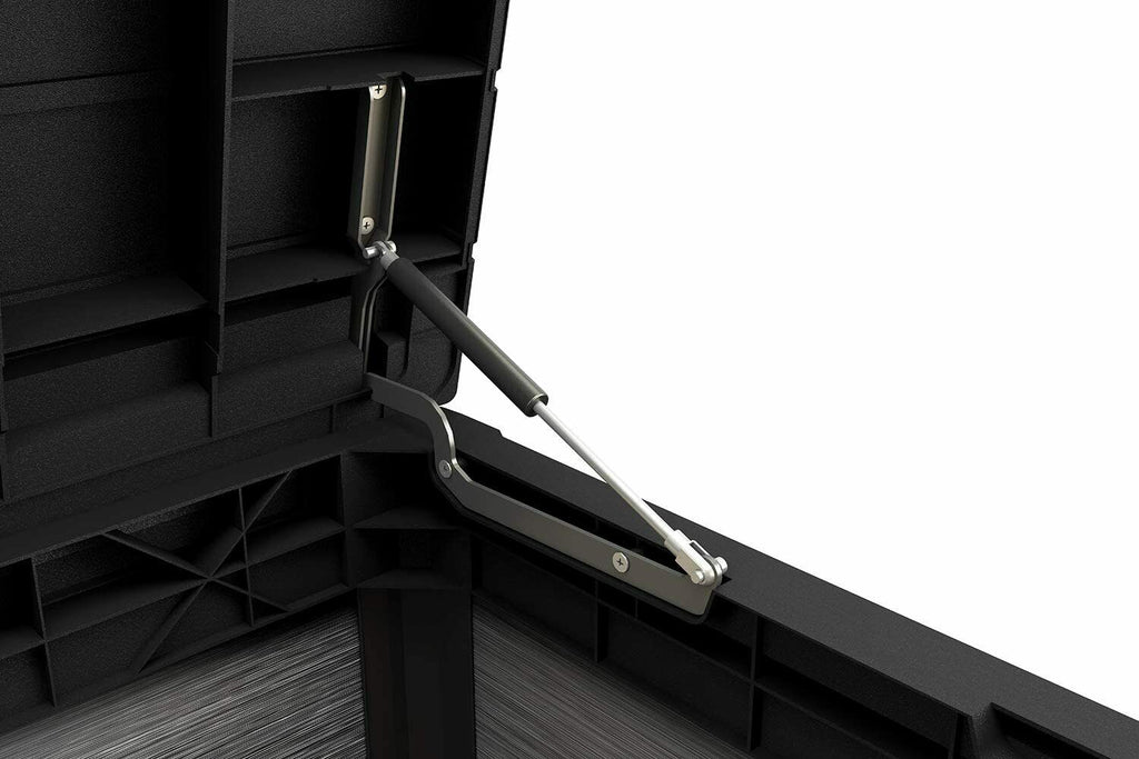A perfect choice for your outdoor space, the Denali storage box combines an ultra-strong build with an elegant design. This sturdy multi purpose outdoor storage box can comfortably seat two adults and is made of innovative DUOTECH™ material which is weather-resistant, UV protected, and features a rustic wood like texture and a stylish dual tone. Featuring a 757L capacity, the Denali will hold cushions or other accessories, helping to maintain your, patio, or garden clutter-free. The piston system opens the box smoothly, while the lockable lid allows you to keep the box firmly closed when necessary.