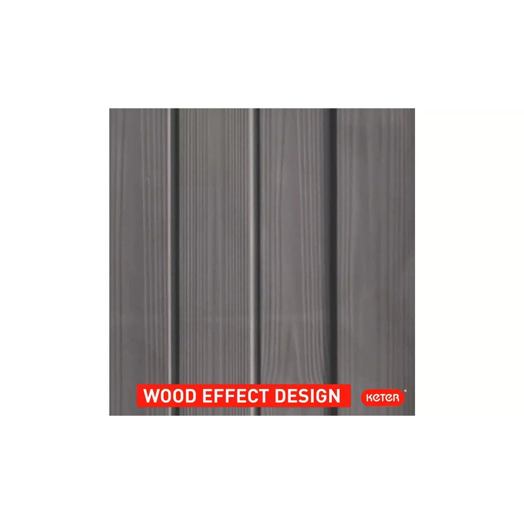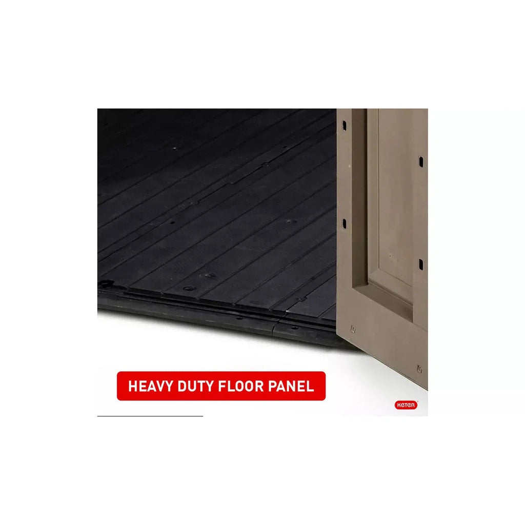 This wood effect shed is constructed out of a weather-resistant plastic with steel reinforcement, providing durability and a low maintenance feature. The Factor 4 x 6 also has a heavy-duty floor panel to give support to your heavy items, built-in ventilation, a window to allow natural lighting and a secondary door that provides a wider entry to give increased accessibility.